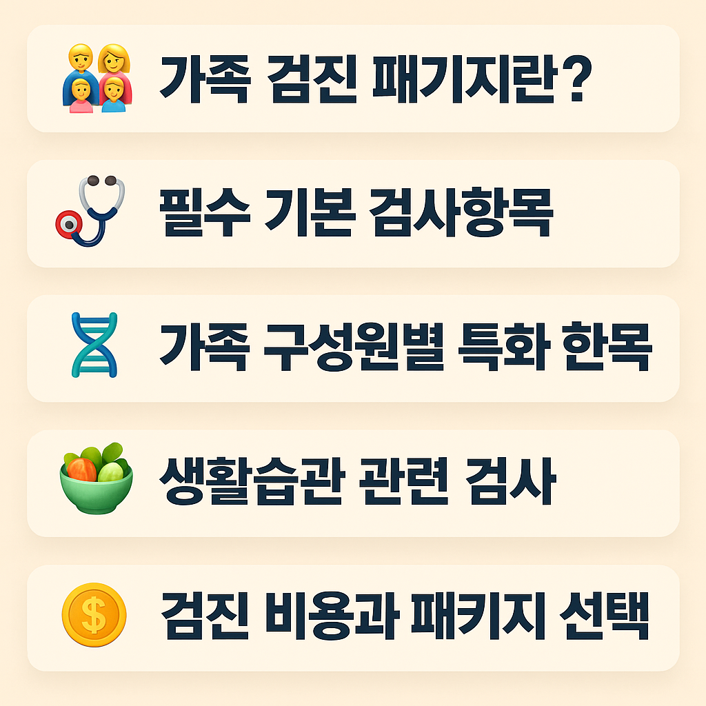 이처럼 가족 건강 검진은 단지 병을 찾는 과정이 아니라, 가족 전체가 더 건강하게 살아가기 위한 시작점이 될 수 있어요. 😊