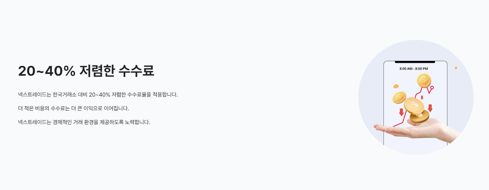 넥스트레이드는 기존 거래소보다 다양한 장점을 제공합니다.