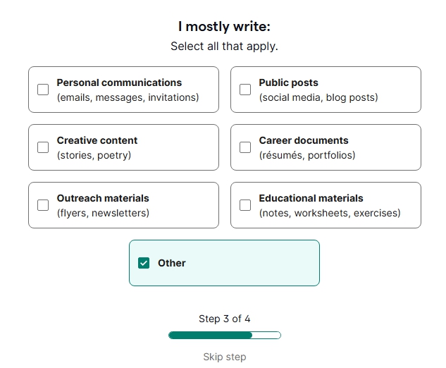 Grammarly의 무료 버전은 기본적인 문법 및 철자 교정 기능을 제공합니다.