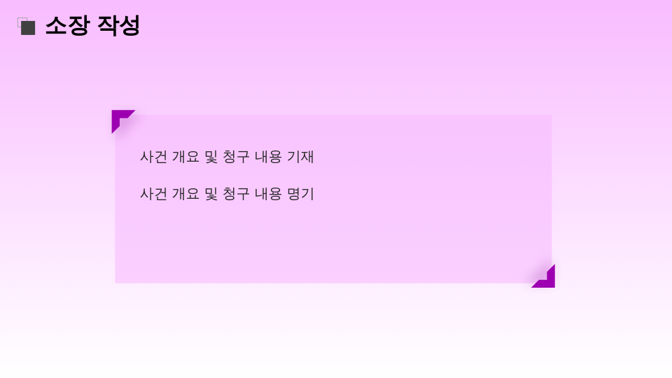 - 소장 작성법원 홈페이지 또는 법원 민원실에서 소장 양식을 다운받아 작성하세요.