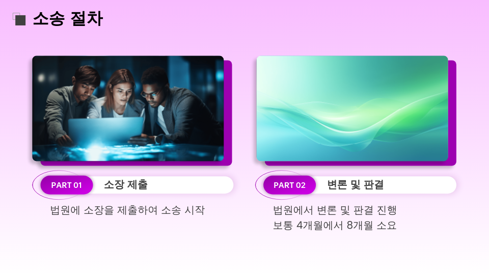 이제 준비한 서류를 바탕으로 법원에 소송을 접수하는 과정을 설명해 드릴게요.