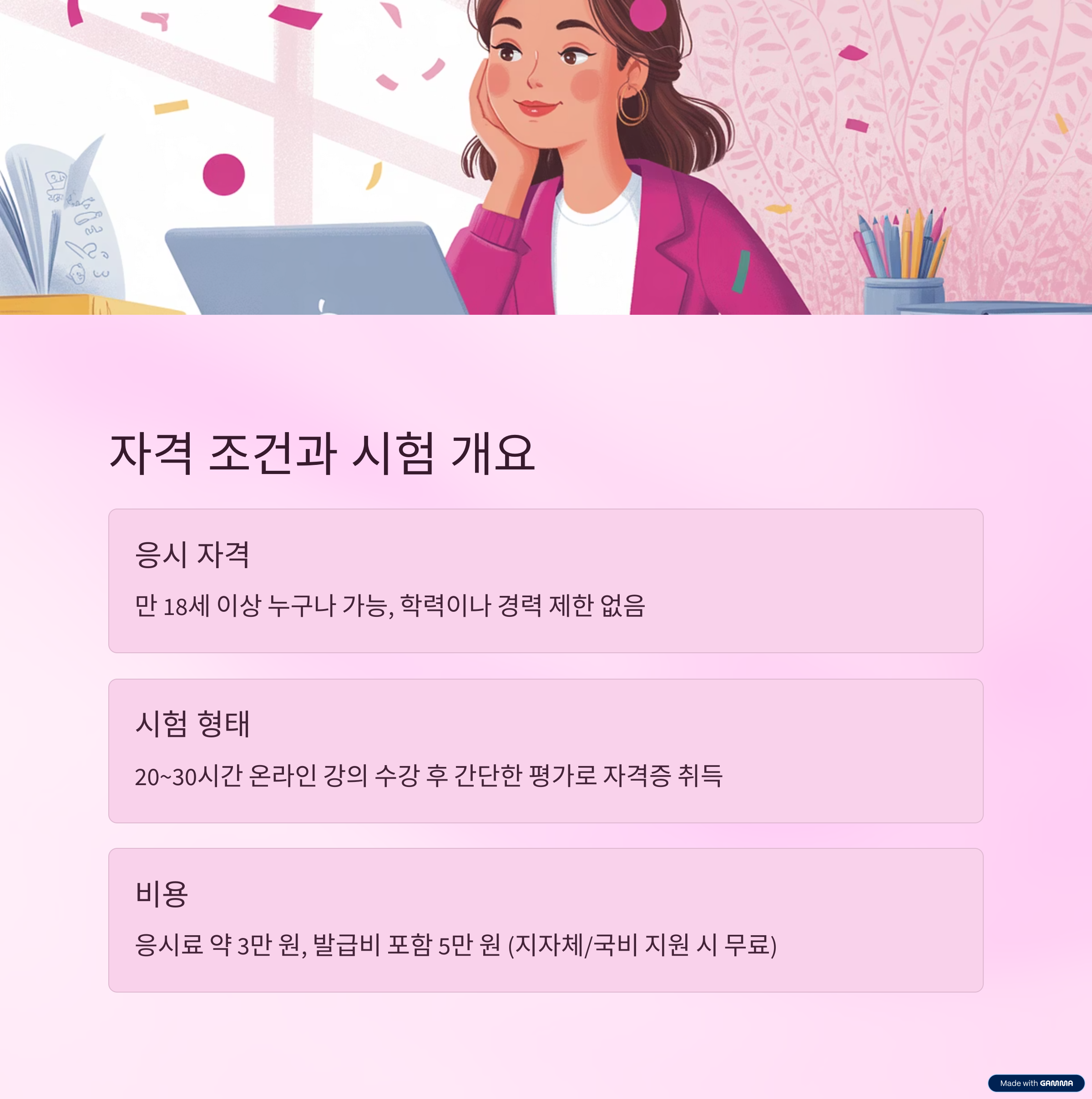 정식 자격증이 민간에서 발급되고 있으며, 검증된 교육기관을 통해 온라인 수강이 가능해요. 집에서도 준비할 수 있다는 점에서 직장인이나 경단녀에게 특히 추천돼요.