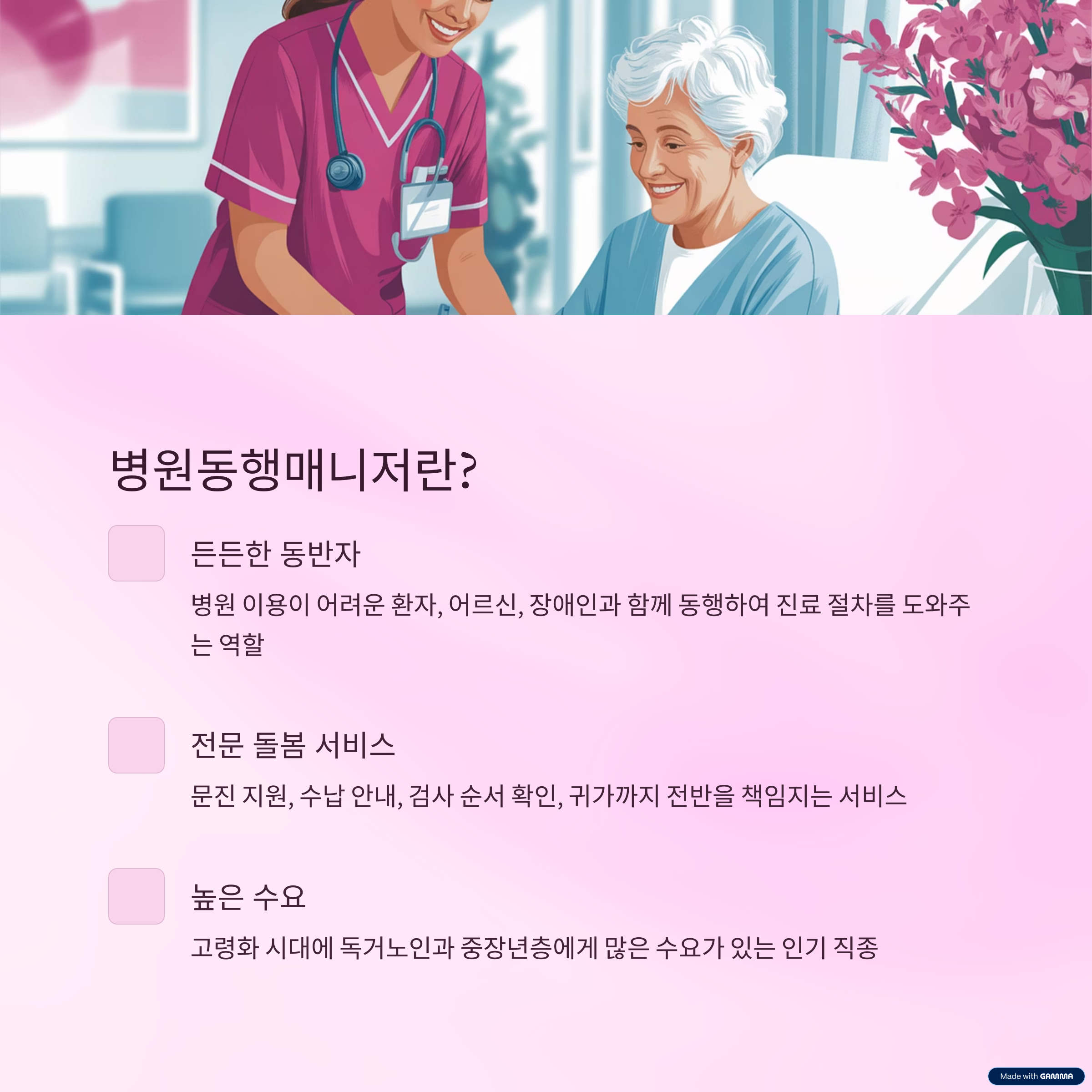 사회적 가치를 실현하면서 수익도 얻을 수 있는 멋진 직업, 병원동행매니저! 준비만 잘하면 당신도 얼마든지 할 수 있어요! 💪