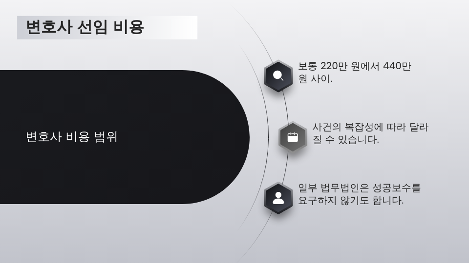 일부 변호사는 착수금을 낮추는 대신, 성공보수를 높게 책정하기도 합니다. 따라서 변호사를 선임할 때는 계약서를 꼼꼼히 확인하고, 성공보수 비율을 반드시 협의하는 것이 중요합니다.
