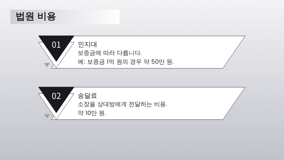 | 인지대 | 청구 금액의 약 0.5% | 법원 접수 비용 |