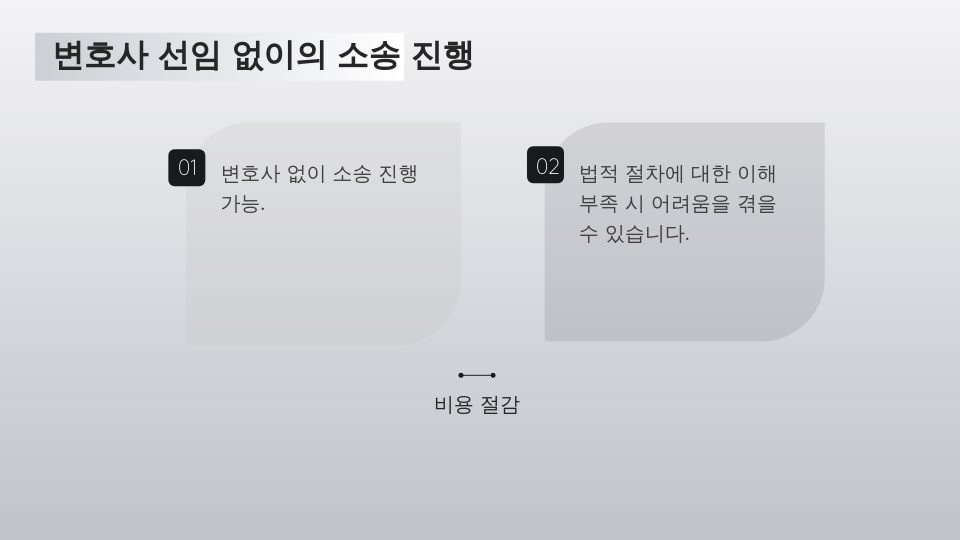 변호사 비용이 부담스럽다면, 직접 소송을 진행할 수도 있습니다. 셀프 소송(본인 소송)을 하면, 인지대와 송달료만 부담하면 되기 때문에 비용이 훨씬 절감됩니다.