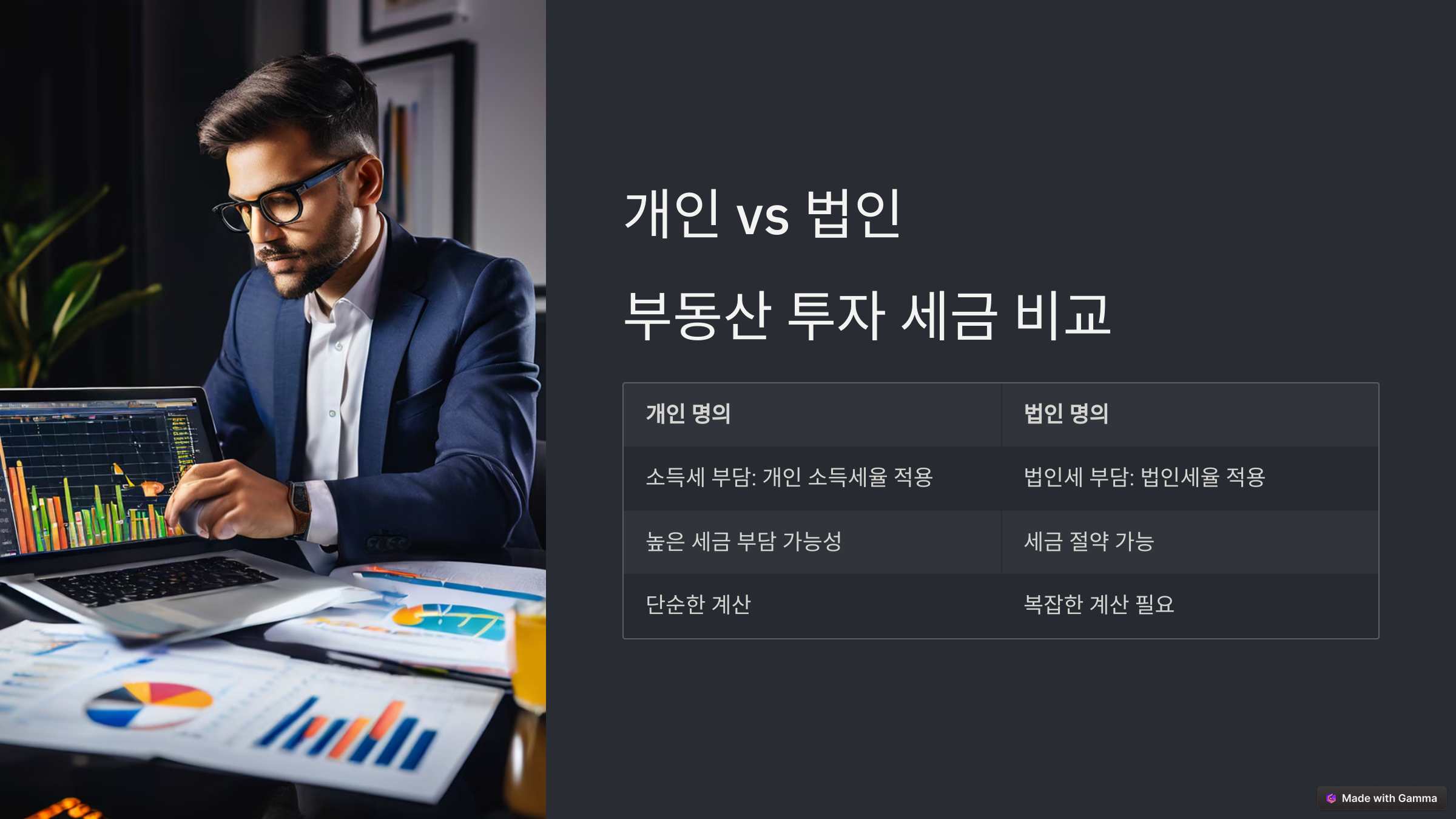 개인과 법인의 세금 차이를 비교해보면서, 어떤 방식이 더 유리한지 확인해볼까요? 🧐