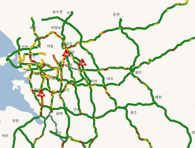 서울외곽순환고속도로, 경부선, 영동선 등 주요 노선이 해당돼요.