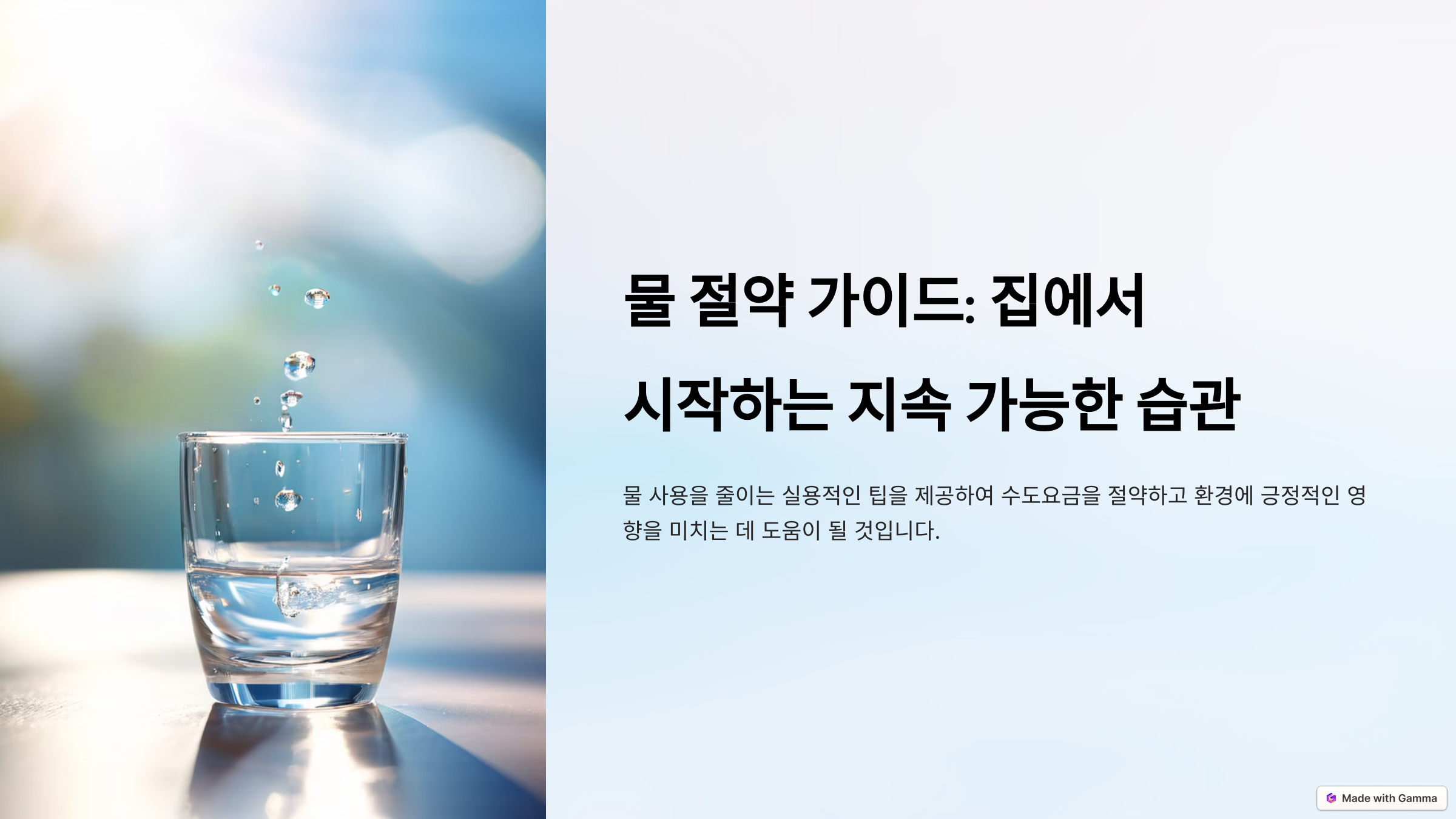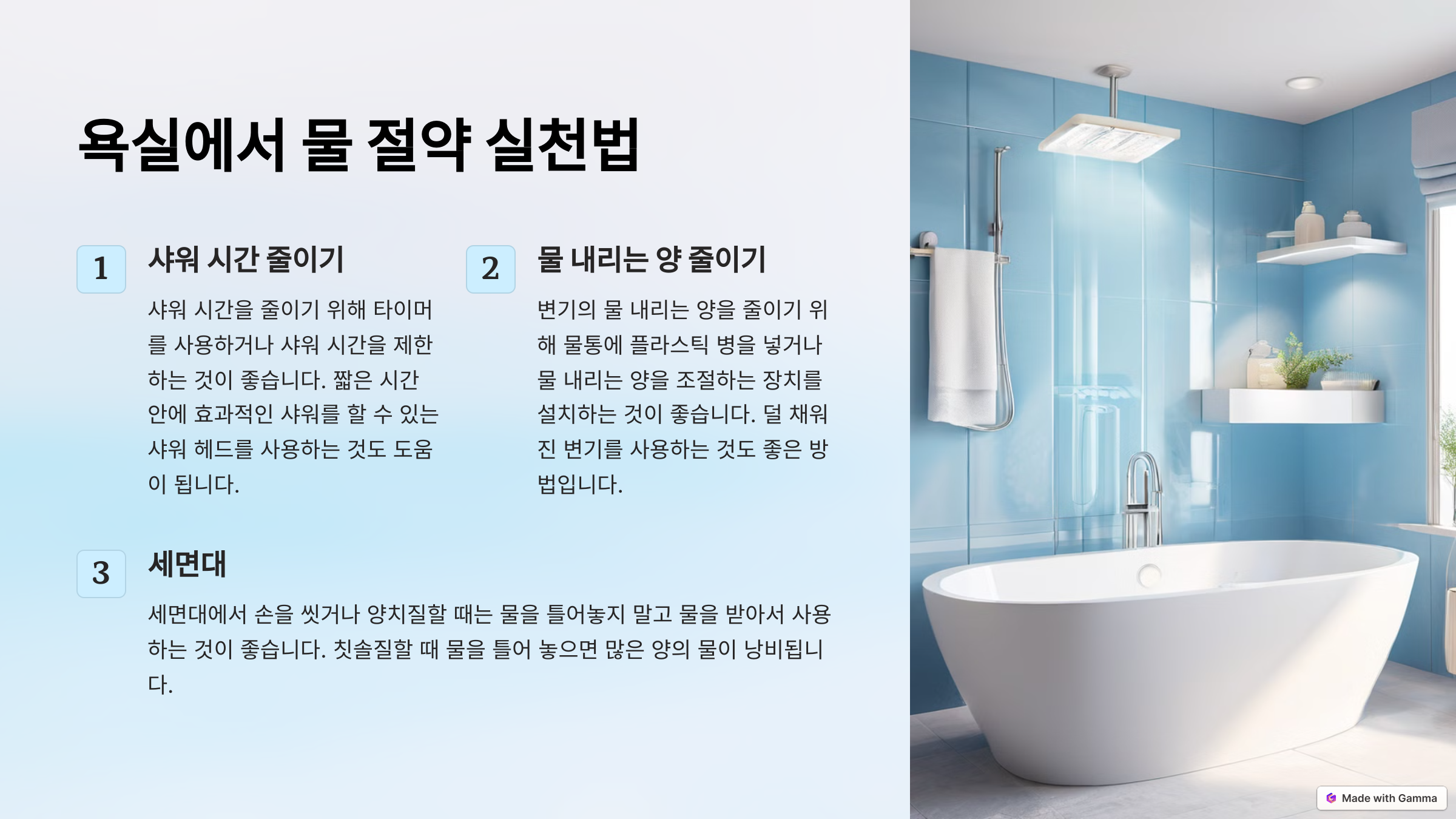 가정에서의 물 절약 실천은 지속 가능한 미래를 위한 필수적인 노력입니다.