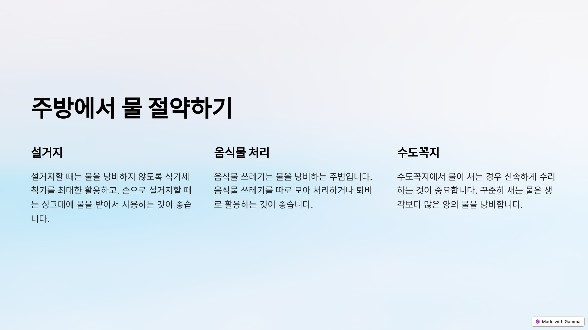 이러한 습관 개선만으로도 주방에서 물 낭비를 크게 줄일 수 있습니다.