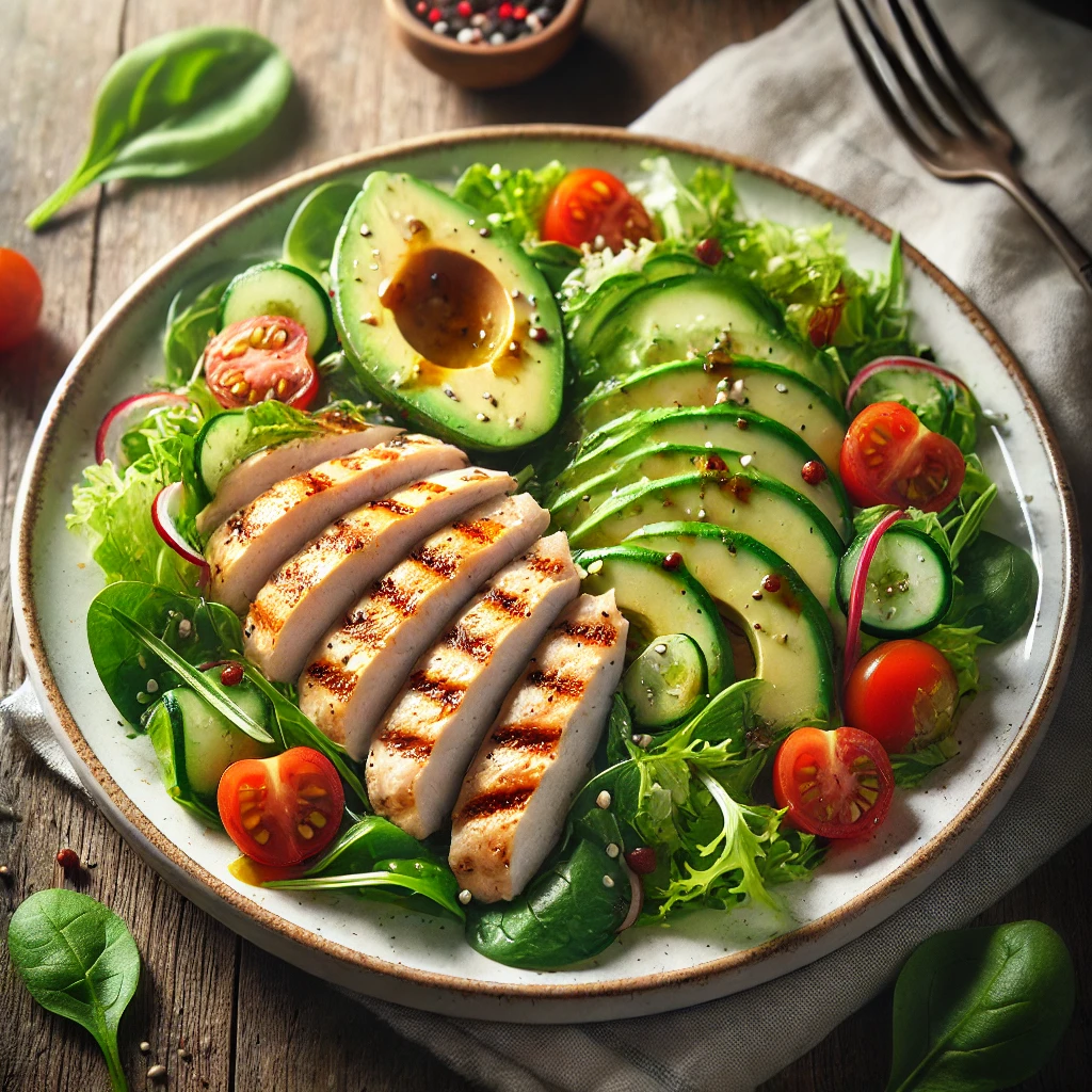 - 닭가슴살 샐러드 + 아보카도 슬라이스