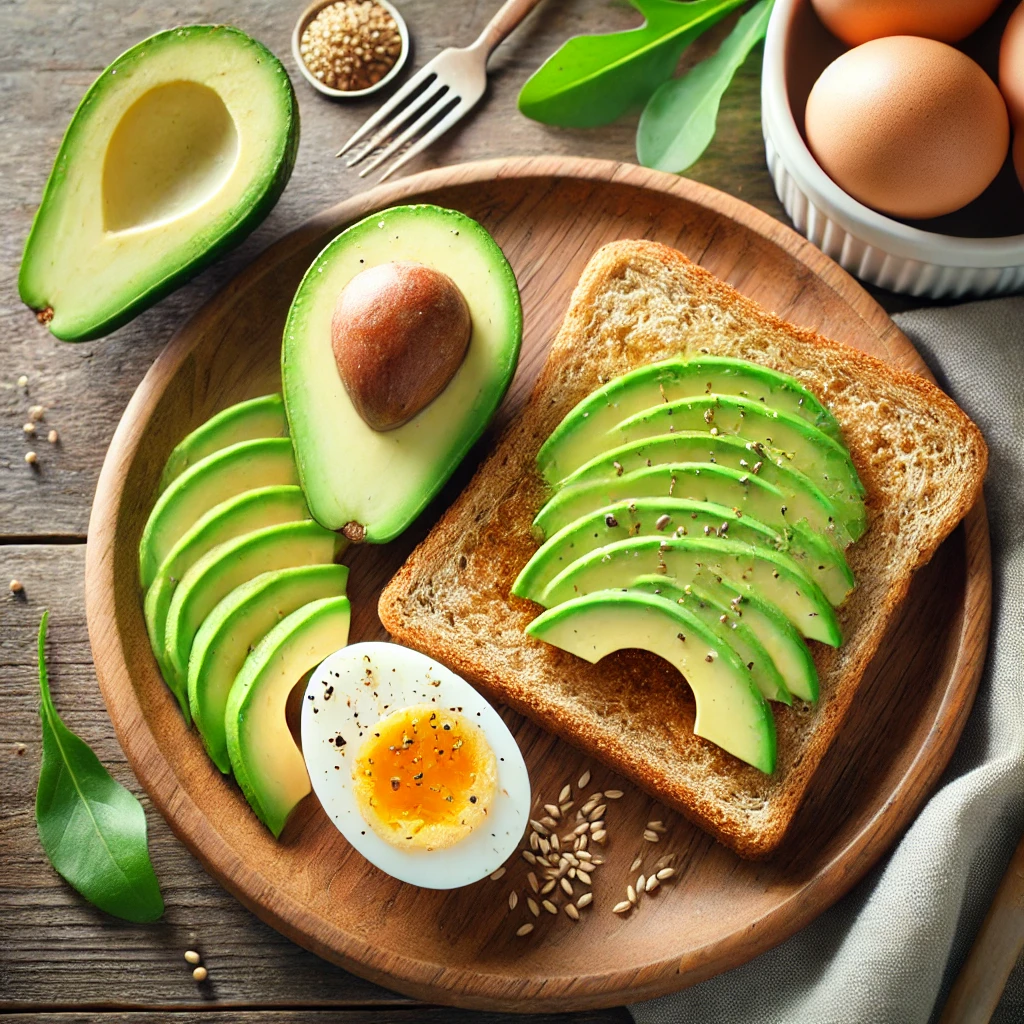 - 통밀 토스트 1장 + 아보카도 슬라이스 + 삶은 달걀 1개