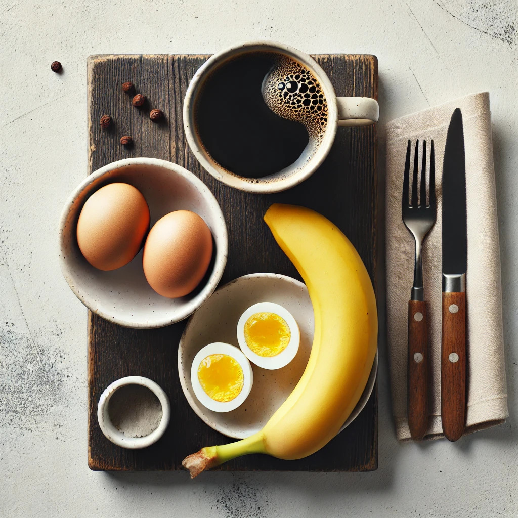 - 삶은 달걀 2개 + 바나나 1개 + 블랙커피