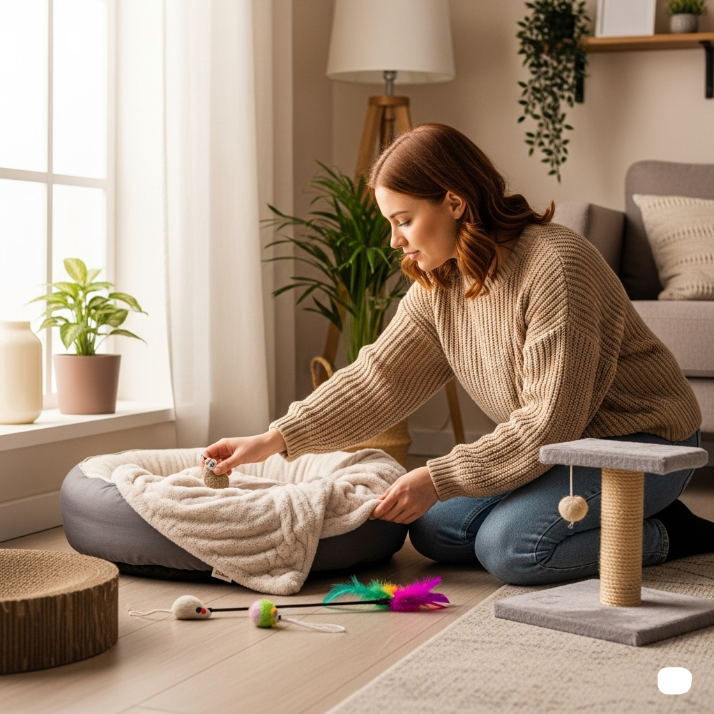 - 주거 환경 점검: 반려동물이 편안하게 지낼 수 있는 충분한 공간이 있는지, 안전하게 생활할 수 있도록 위험 요소(창문, 전기선, 깨지기 쉬운 물건 등)를 제거할 수 있는지 확인합니다. 캣타워나 스크래쳐, 안전한 실내 공간 확보 등 유기묘를 위한 환경 조성도 중요합니다.