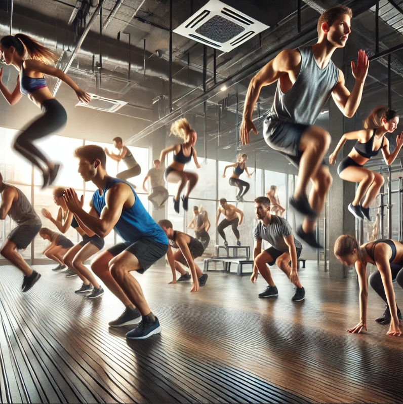 근력과 유산소 운동을 동시에 수행하여 전신 체력을 강화합니다.