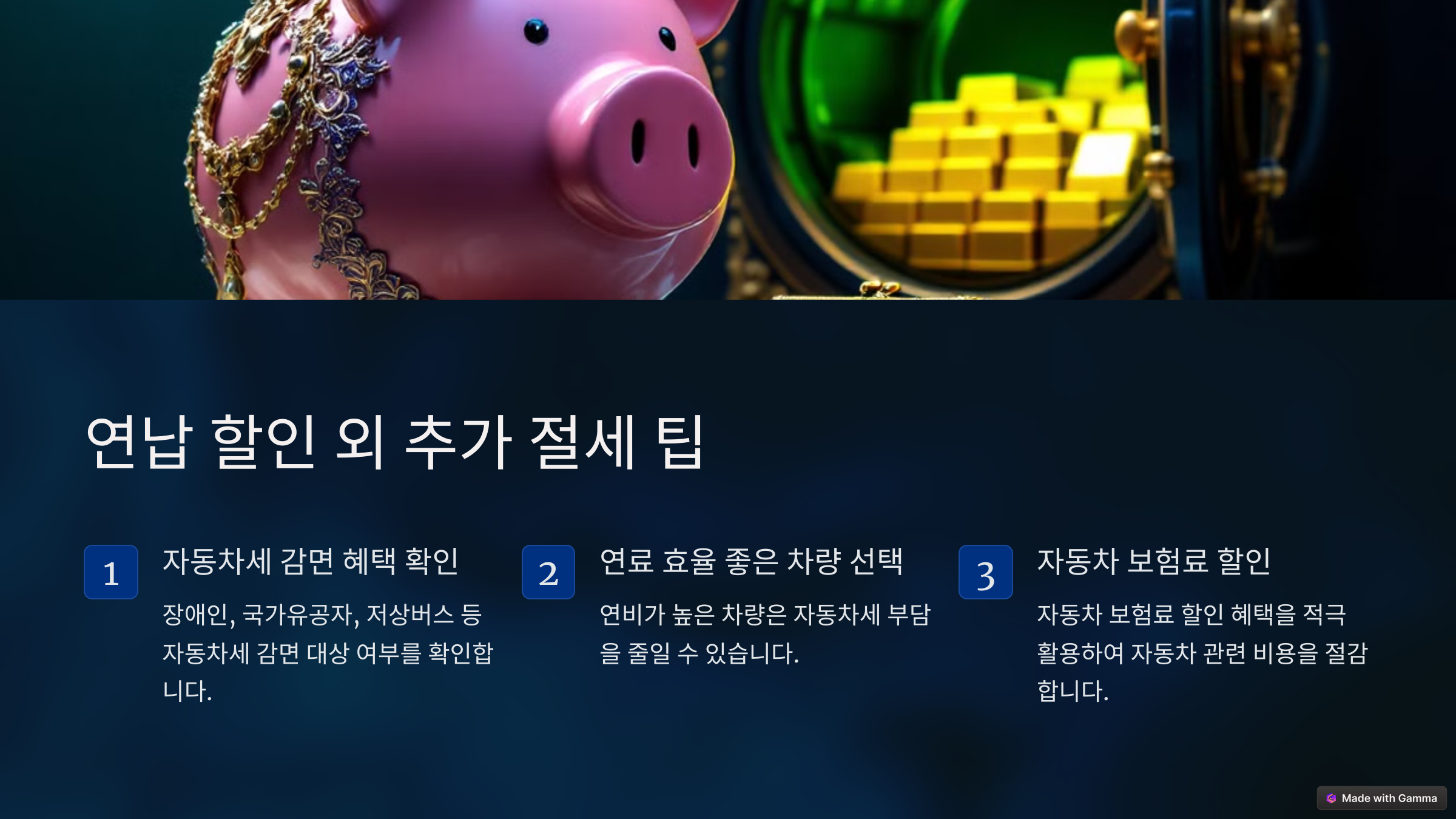 이러한 절세 팁을 활용하면 연납 혜택과 함께 더 큰 재정적 여유를 확보할 수 있습니다.