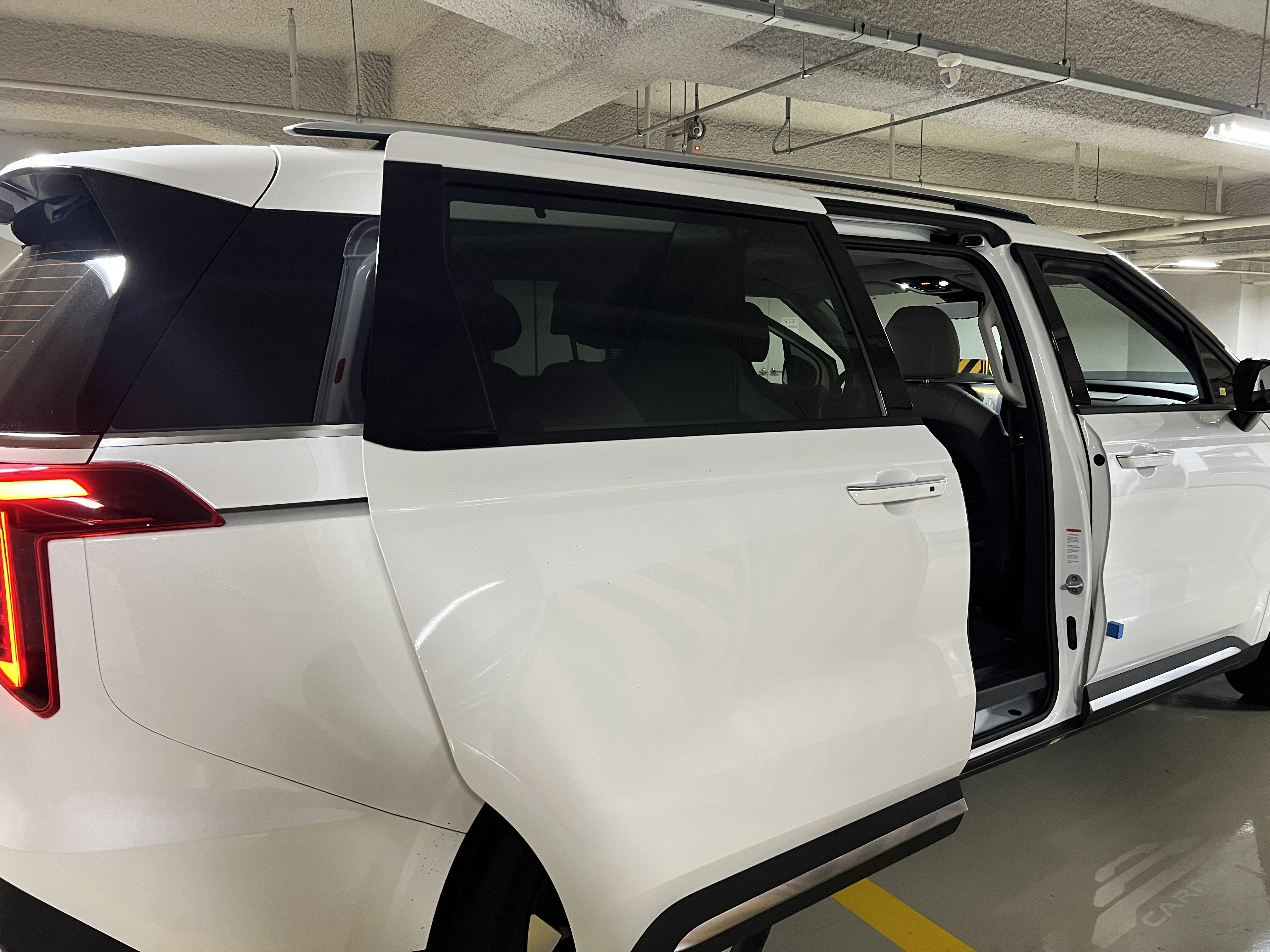 도어는 기존과 마찬가지로 양쪽 슬라이딩 방식이며, 버튼 하나로 열고 닫을 수 있어 편리합니다. 트렁크 역시 전동식으로 개폐되며, 손을 대지 않고도 발동작만으로 열리는 기능이 그대로 적용되었습니다. 전체적으로 패밀리카로서의 기능성을 해치지 않으면서도 하이브리드 모델 특유의 경제성을 강조하는 디자인 변화가 이루어졌습니다.