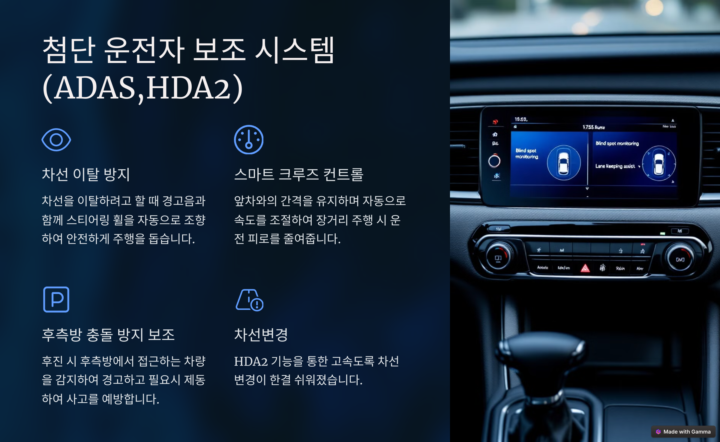 첨단 운전자 보조 시스템(ADAS,HDA2)과 안전 기능