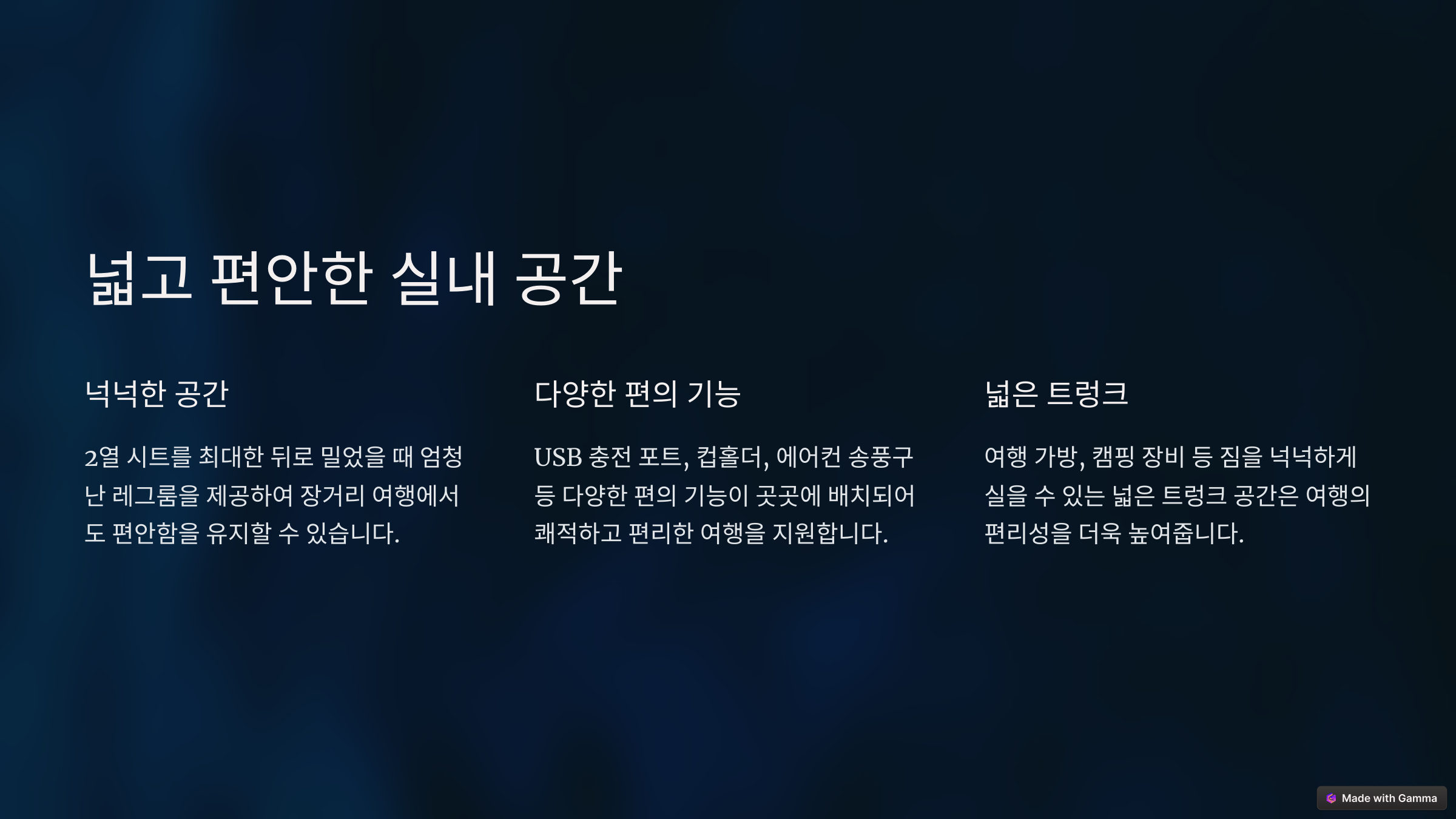 3. 가족 여행에 적합한 차량인가요?