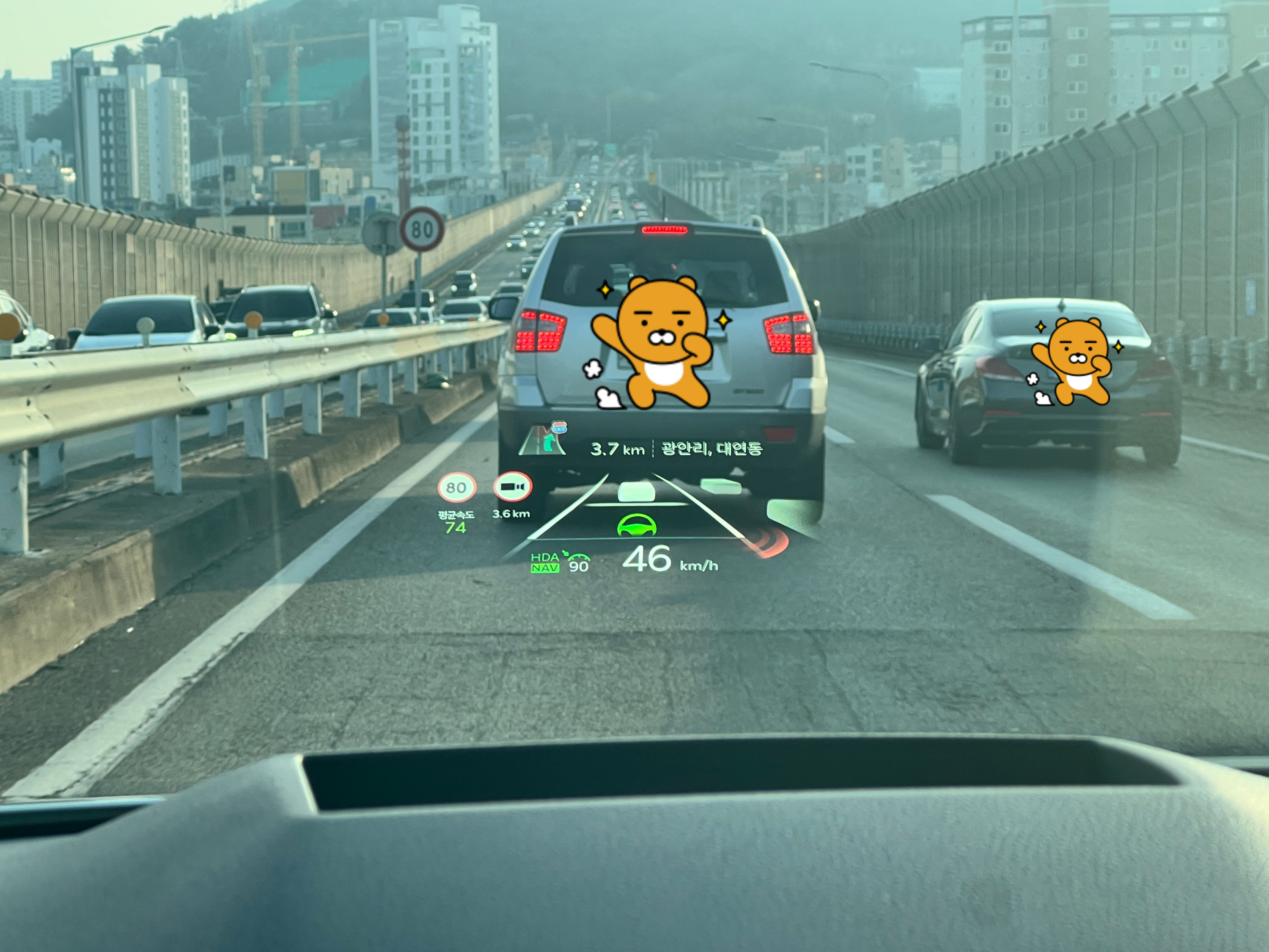 실제 주행에서 스마트 크루즈 컨트롤을 활성화하고 장거리 고속도로를 주행해 본 결과, 속도 조절과 차간 거리 유지가 매우 자연스럽게 이루어졌습니다. 급감속이나 급가속 없이 부드럽게 조절되었으며, 차선 유지 기능도 정확도가 높아 장시간 운전 시 상당한 도움이 되었으며, HDA2 탑제 기능이 좋아진듯 합니다.