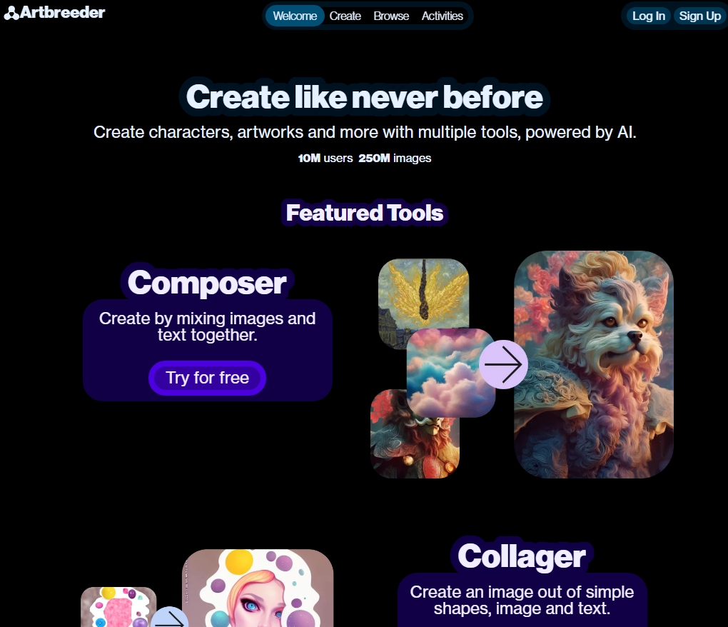 Artbreeder는 기존 이미지를 변형하거나 새로운 이미지를 생성하는 데 특화된 도구입니다.